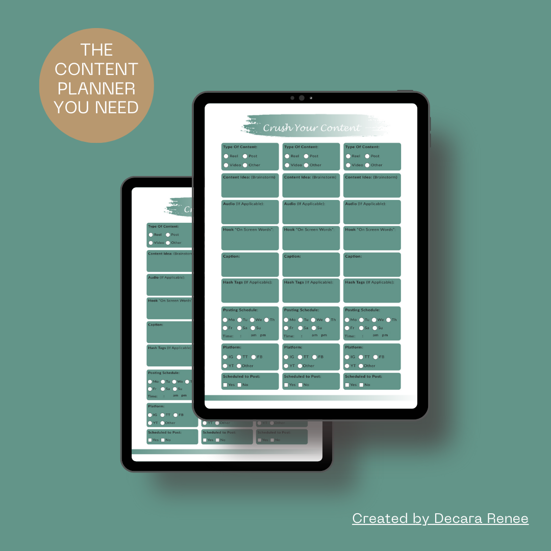 As a business owner, influencer, or content creator, we know that CONTENT is KEY. Well thought out and organized content will make your days easier and your posting schedule seamless. Grab the Crush Your Content Digital Planner Now.